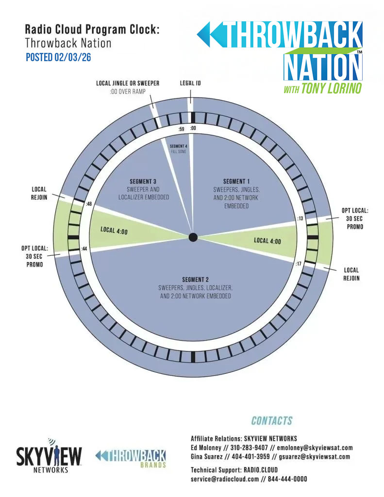 With new technology from our partners at radio.cloud, Throwback Nation™ on your station is now 100% Localized! That means YOUR call letters open every break; your local sweepers and jingles, and twice an hour – we’re talking about YOUR station and YOUR community.